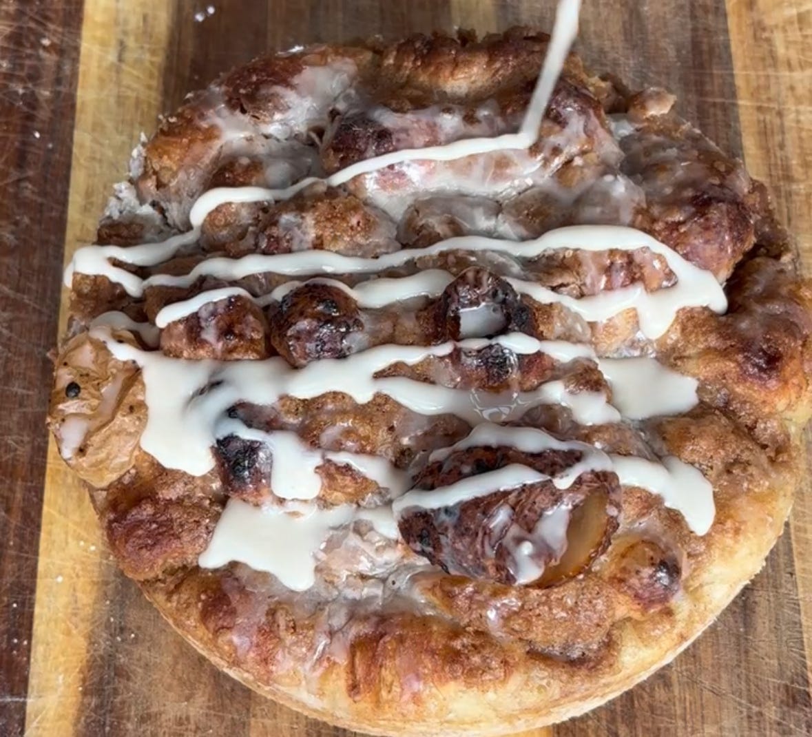 While focaccia bakes, combine powdered sugar, milk, and vanilla to a bowl. Mix well, adjusting ratio until frosting sticks to (but drips off of) a spoon.